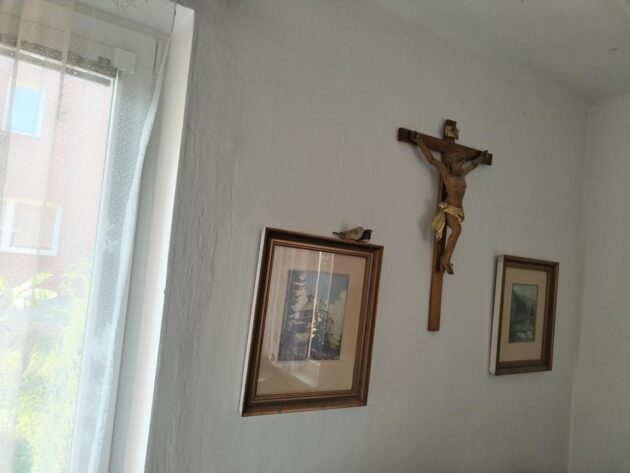 „Ze života našich zebřiček, jež se nechtějí vrátit do klece, domečku svého, když jsem jim vyčistil, vyměnil vodu, dal jablíčko. Asi si chtějí se mnou hrát.“