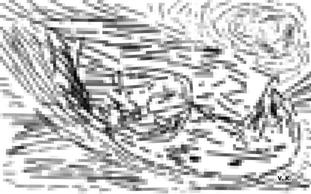 Dílo je tak trochu abstraktní, tak trochu konkrétní, přesto nachází své kompozice tvůrčí odvahy.