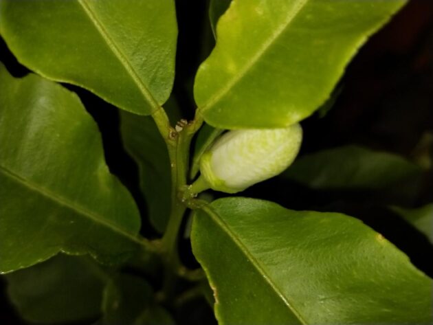 Lavina květů u jednoho citrusu skutečně vyvolává další „lavinky“ bílých kvítků. Venku ponuro, doma též. Interiér obývacího pokoje nemá letos záclonu.