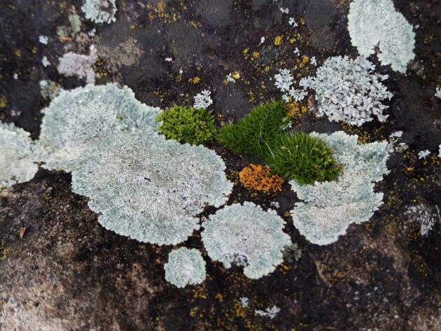 Včera jsem byl v areálu Baťovy nemocnice, kde jsem zhlédl kámen, na němž rostou mechy a lišejníky dohromady.