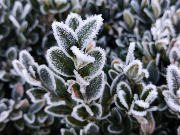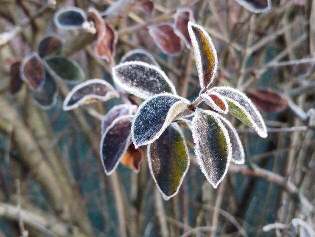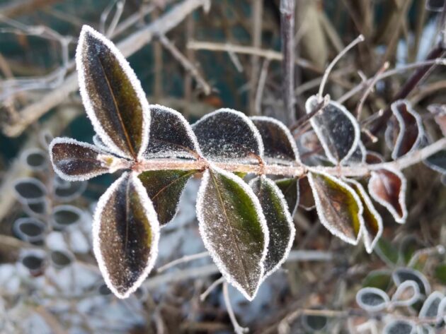 Dnes jsem vyfotil umění ptačího zobu a zimostrázu poblíž zastávky Spojovací. Mráz dokreslil obrysy jednotlivých lístků.