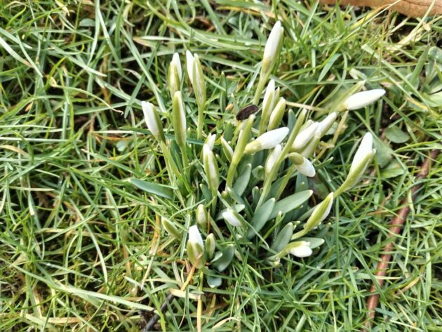 Kvetoucí sněženky na zahrádce