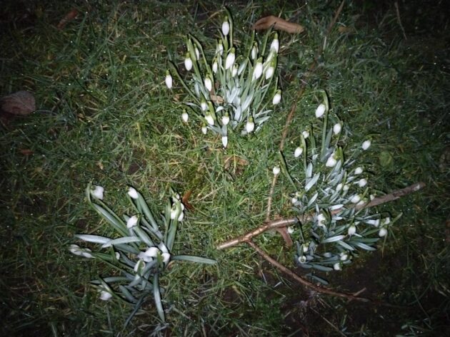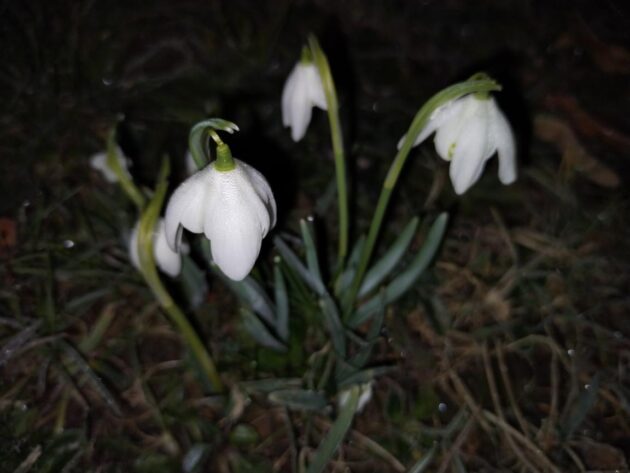 Kvetoucí sněženky v noci