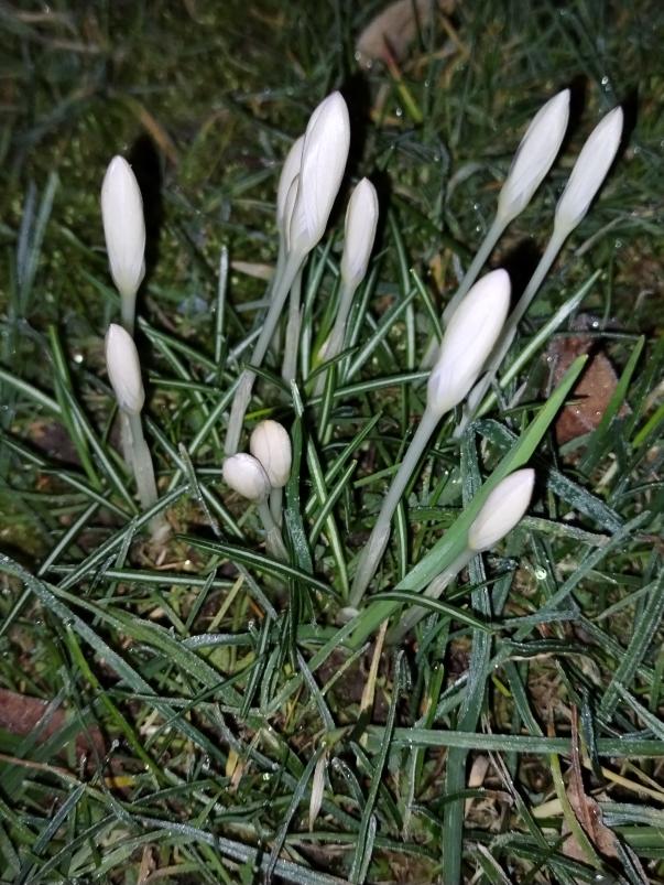 Dneska jsem brzo ráno vyfotil na zahrádce kvetoucí sněženky a krokusy ještě v noční tmě.