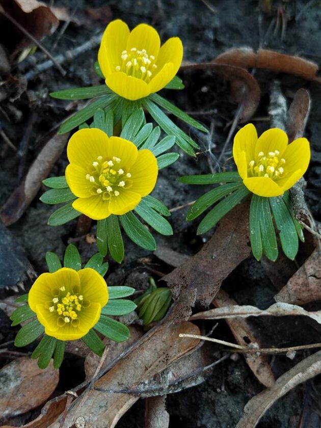 Nedávno jsem však psal o odkvétajících, ještě kvetoucích, talovínech zimních ve městě.