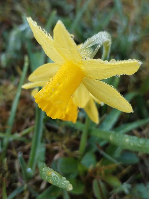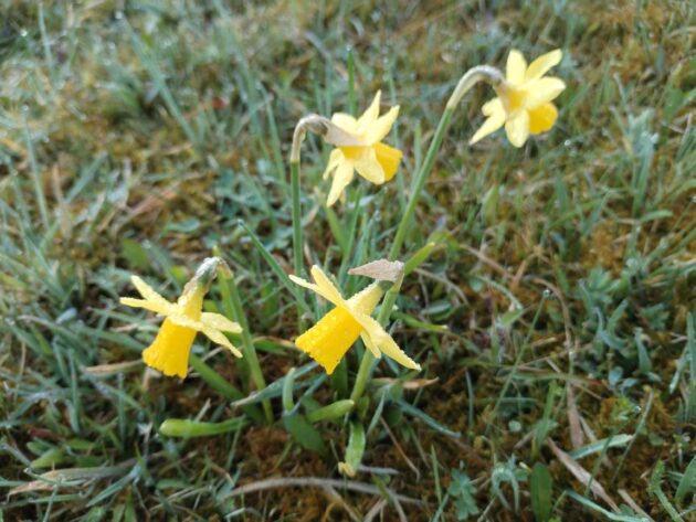Dnes u Evangelického kostela rostou malebné zakrslé narcisky. Vyfotil jsem je na mokrém trávníku. Je jich stále více. Je dobře, že dochází ke zplaňování a šíření uvedených cibulovin.