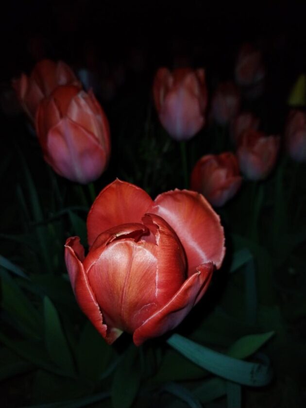 Kvetoucí azalka, tulipány a kdoulovec japonský v noci u nás doma na zahrádce aktuálně vynikají. Mnohé tulipány již odkvétají. Jiné ještě v květu zbývají.
